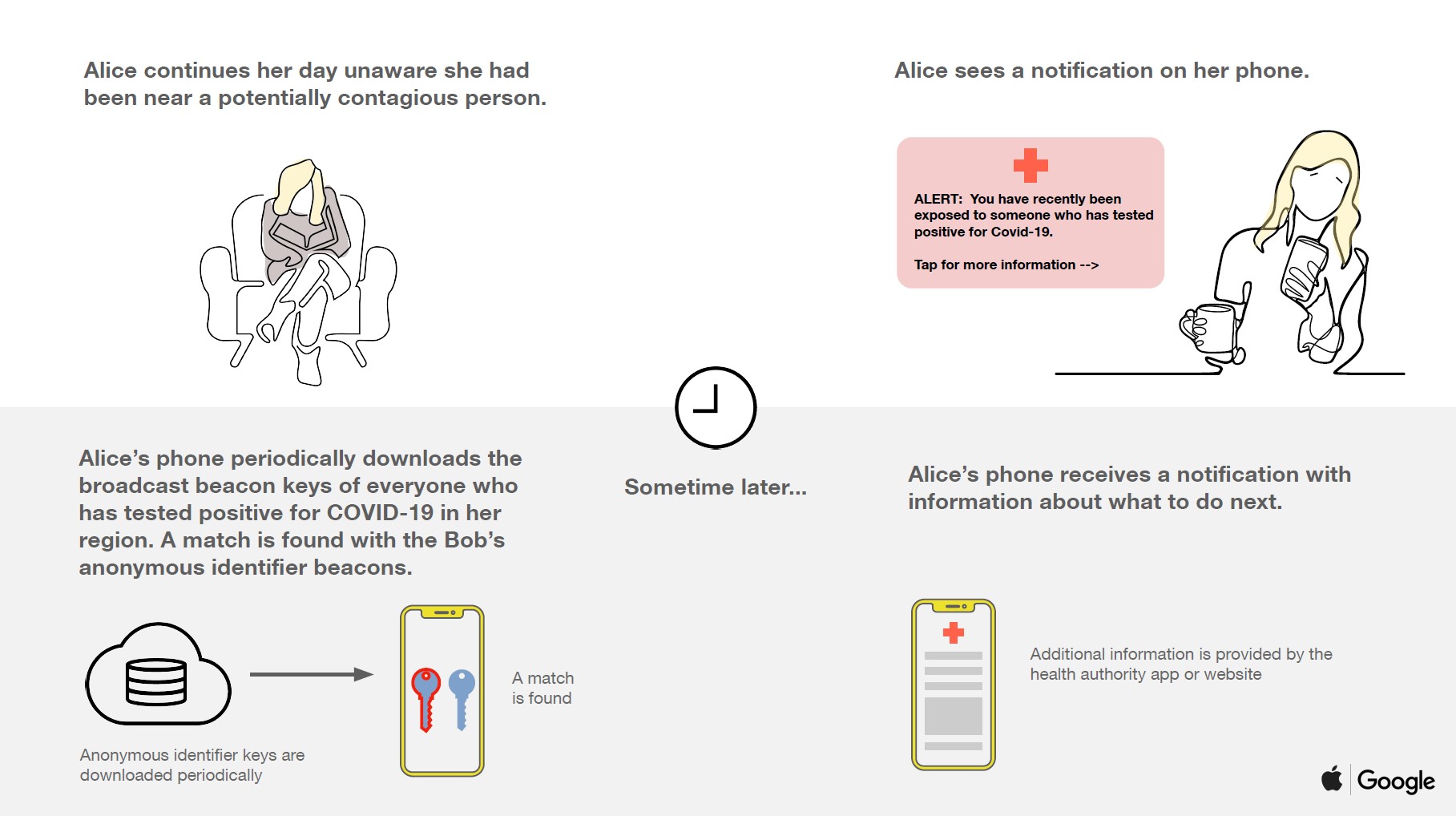 To keep those who are using the app anonymous, Google and Apple claim the information sent out will be designed to protect privacy.