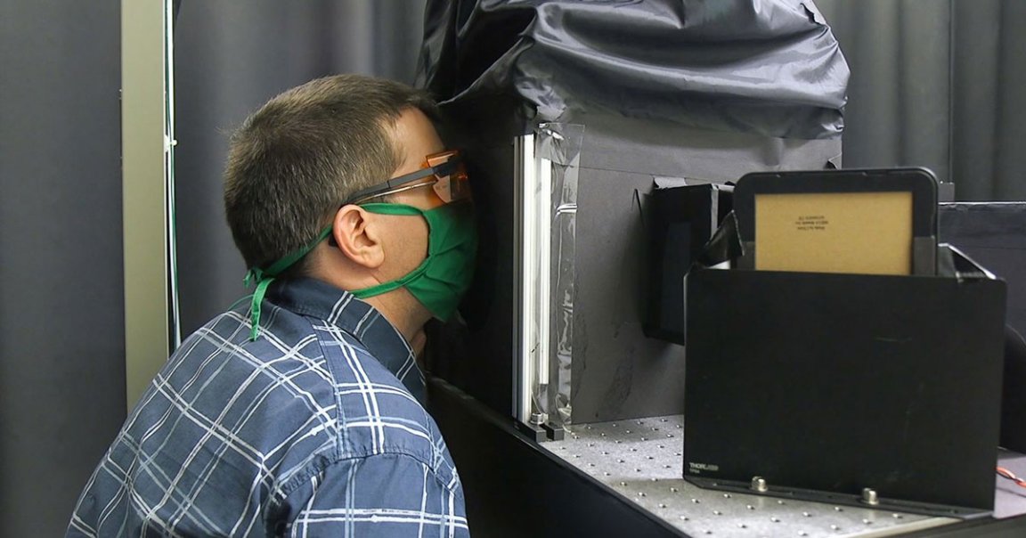 To test the masks, the team “MacGyvered a relatively inexpensive apparatus from common lab materials that can easily be purchased online,” according to an official press release, made up of “a box, a laser, a lens, and a cell phone camera.”