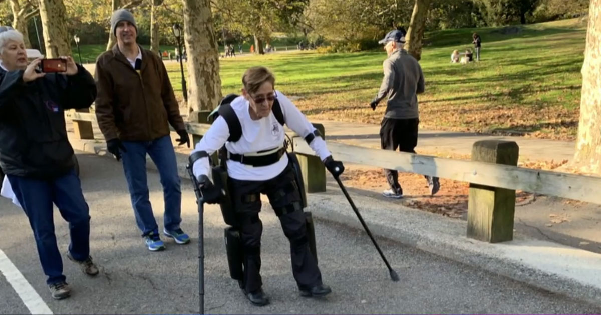 When she crossed the finish line on November 3, the 65-year-old became the first paralyzed American to successfully complete a marathon — and she did so with the help of a robotic exoskeleton.