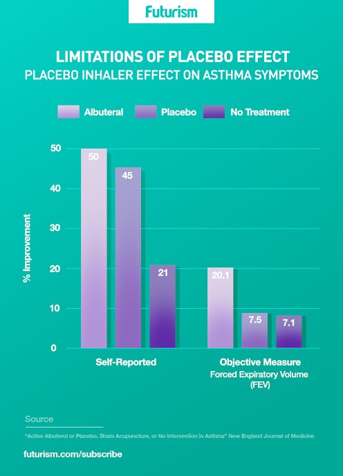 While Miller goes on to say that the effect can never cure an objective disease with definite biological causes — it could, for example, not cure the ebola virus, but may help with symptoms — because “There are real limits to what you can condition.” The placebo has to treat something that the brain can adjust itself, without help, such as pain.