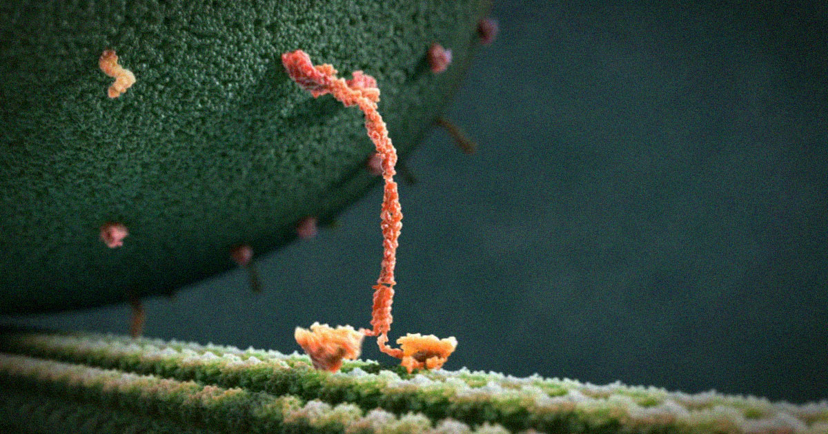 The loofah-footed protein in the viral clip was animated to show how kinesins are thought to move. And yes, they really are believed to “walk” along molecular rails called microtubles.
