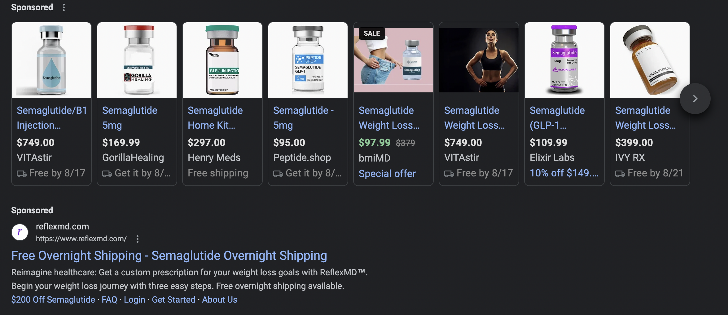 In a cursory Google search, Futurism also found that search engine provides sponsored results for even more unregulated semaglutide and tirzepatide, even though the company’s own guidelines forbid running ads for pharmacies selling prescription drugs without a prescription.