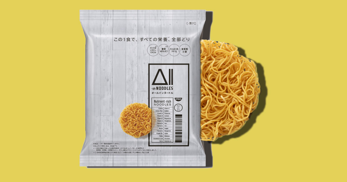 Nissin, the company behind one prominent line of instant ramen noodle packets, is poised to launch a new “All-In Noodles” product that, it says, fully satisfies a typical person’s nutritional requirements.