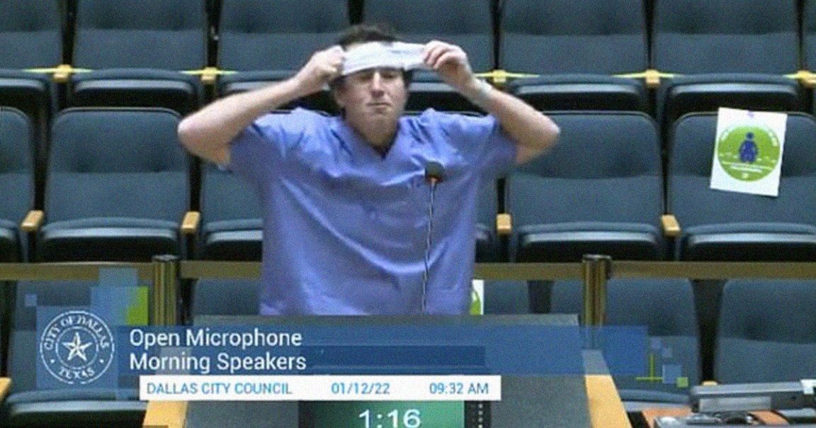 Understandably, some people are really starting to lose their minds. During a Dallas City Hall’s open mic session earlier this month, for instance, a YouTuber named Alex Stein took to the stage and used over two minutes of his allotted time to serenade council members with a highly questionable pro-vaccination rap.