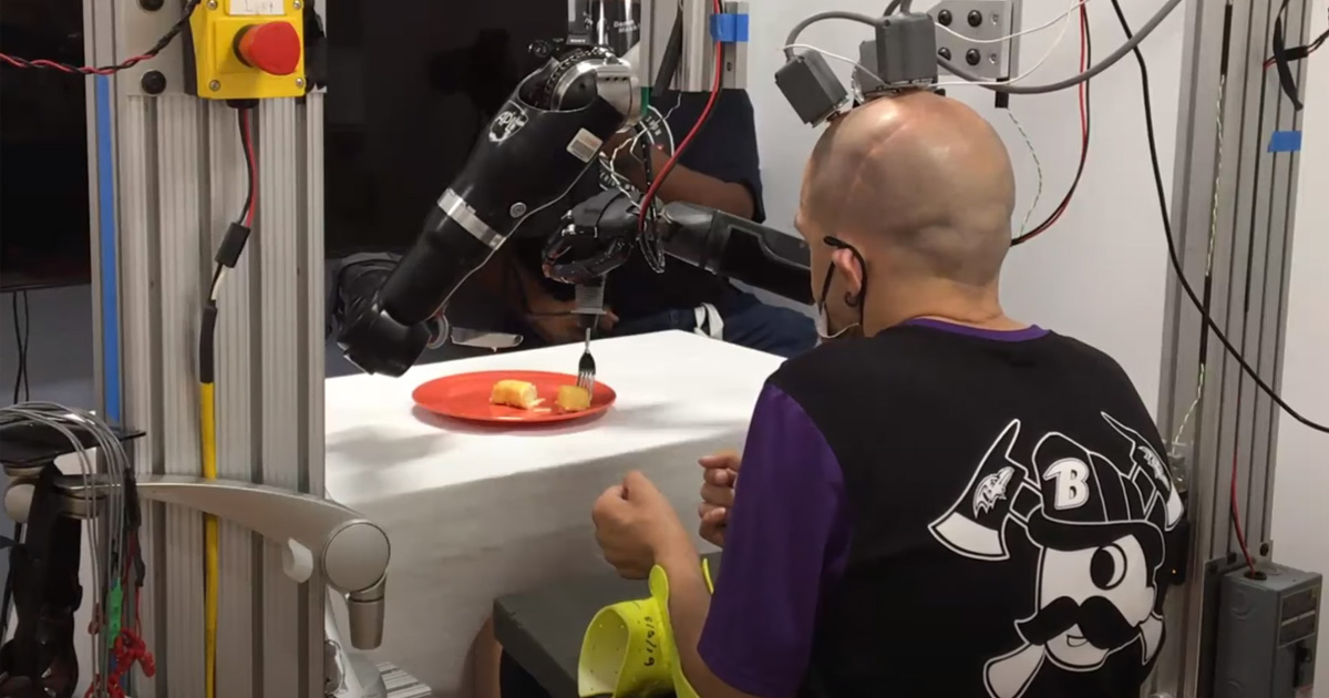 After living with quadriplegia for 30 years — meaning that all four of his limbs are paralyzed — Robert “Buz” Chmielewski was able to feed himself with a fork and knife thanks to a pair of sophisticated robotic prosthetic limbs and a series of electrodes implanted onto his brain.