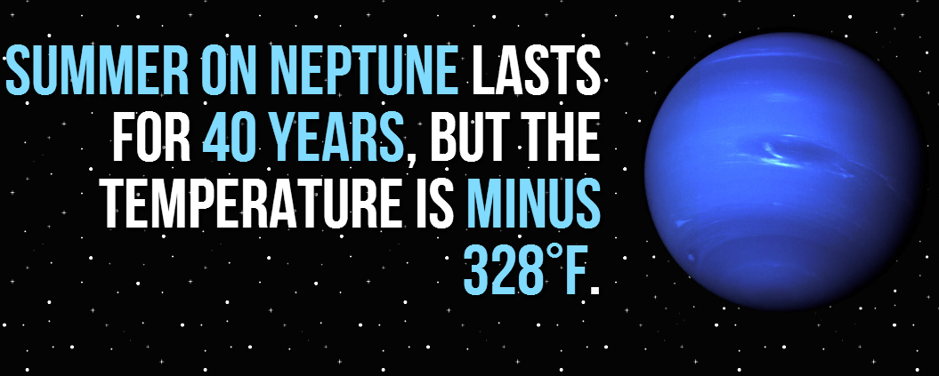 Another feature of the atmosphere that would quite shatter to pieces the blue lagoon analogy is the temperature: 72 to 52K (-330 to -366 F). This is not surprising if we consider how far it is from the Sun and that the strength of the solar radiation drops by the Inverse Square Law. Nevertheless, a bigger riddle arises at this point: where is the energy to propel such insane weather coming from? Besides, the planet radiates about the same energy than its twin Uranus, but receives less than half the sunlight… let’s keep diving.