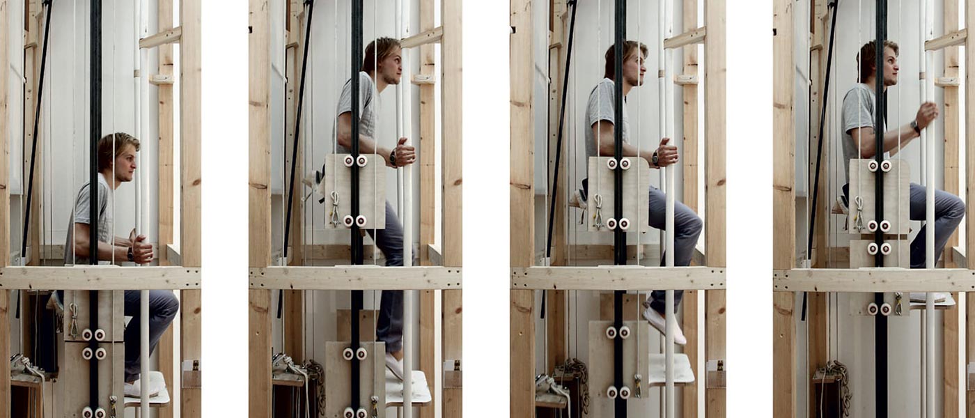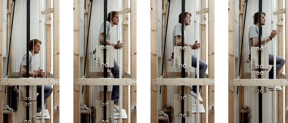 Enter Rombout Labs and their concept of “vertical walking.” Their technology is designed to allow humans to move between building floors without the need for any sort of power supply, also using less effort than we would if we were using stairs, and making optimal use of available vertical space. “By using harmonious movements and smart materials, only 10% of the effort of walking stairs is needed to bridge multiple floors. This not only provides a solution for the growing number of people who are unable to take stairs, but moreover offers new possibilities for urban architecture,” they explain on the Dutch Design Week website, where the system is currently featured.