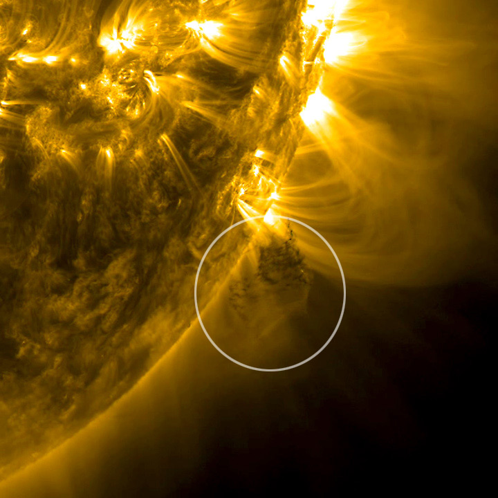 And this is what we saw just several days ago. Researchers witnessed a dark clump of plasma rise up above the Sun, twist, spin about, and break away from the rest of our the sun. The images were taken in a wavelength of extreme ultraviolet light by NASA’s Solar Dynamics Observatory, and they reveal ionized iron that has been heated to at least a million degrees (not so fun for anyone who happens to be nearby).