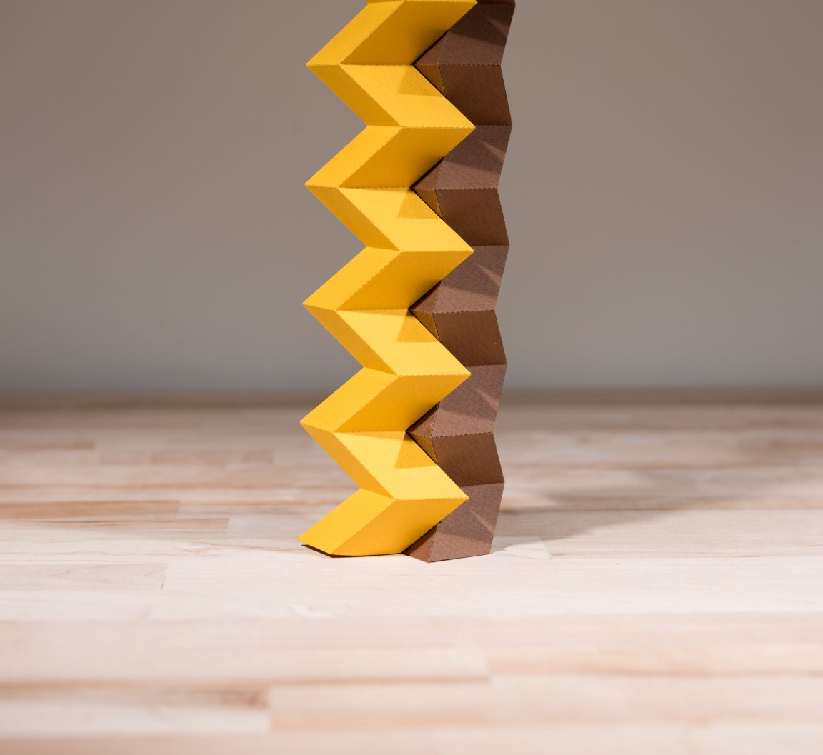 - The researchers use a particular origami technique called Miura-ori folding. They make precise, zigzag-folded strips of paper, then glue two strips together to make a tube. The zipper configuration works even with tubes that have different angles of folding. By combining tubes with different geometries, the researchers can make many different three-dimensional structures, such as a bridge, a canopy or a tower.