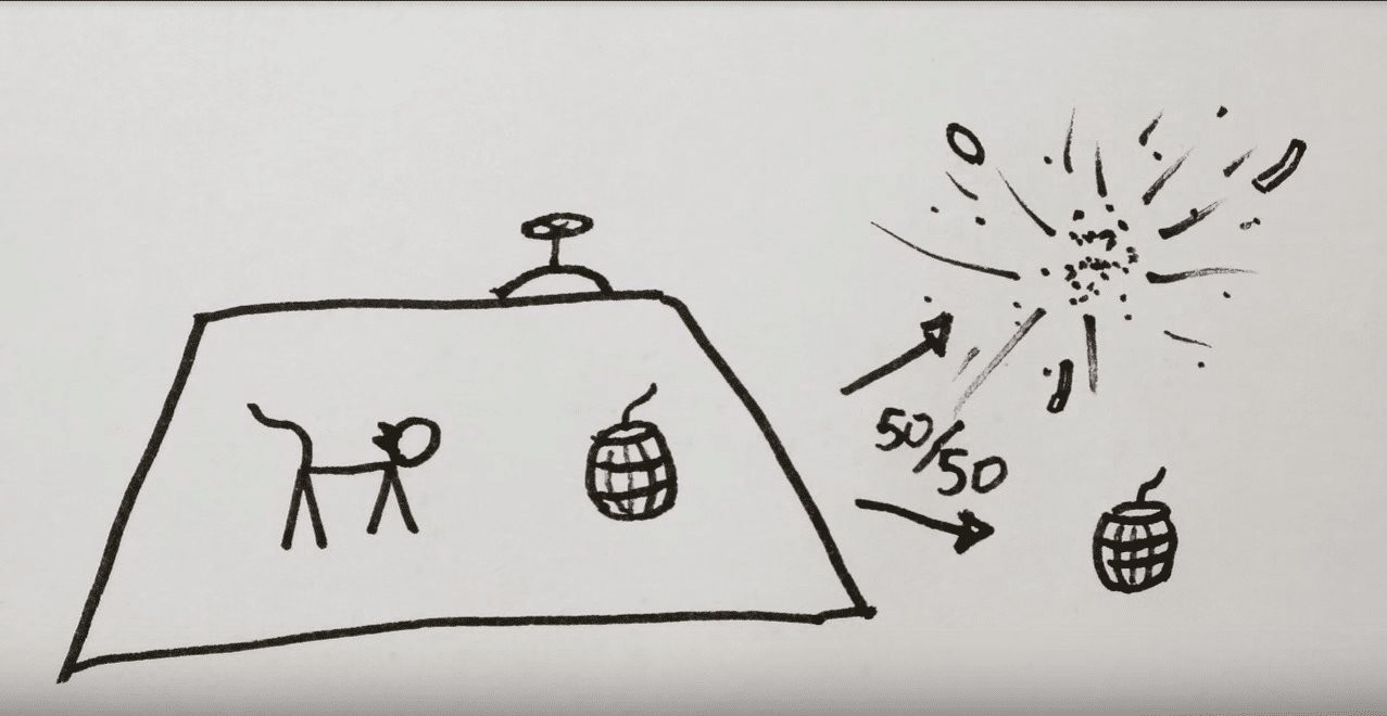 The theory goes that, if you were to put a cat into a sealed box with a substance that had a 50/50 chance of decaying within an hour and releasing a vial of poisonous gas, then what we have is a cat in a box with a 50% chance of living and a 50% chance of dying. Pretty simple so far.