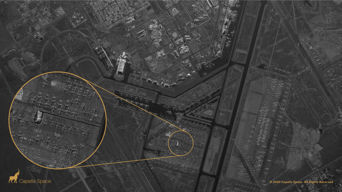 Editor’s note 12/19/20: The original version of this story overgeneralized the Capella satellite’s capabilities to image the interiors of buildings. While it can indeed see inside some structures, including spotting the shapes of airplanes inside hangars, the company clarified that is not able to see details inside dense structures such high rises or residential homes. The story and headline have been updated throughout.