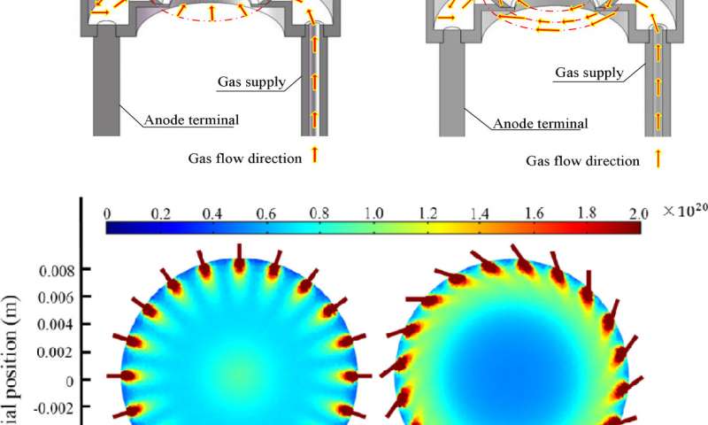 “The most practical way to alter the neutral flow dynamics in the discharge channel is by changing the gas injection method or the geometric morphology of the discharge channel,” said Liqiu Wei, one of the lead authors of the paper.