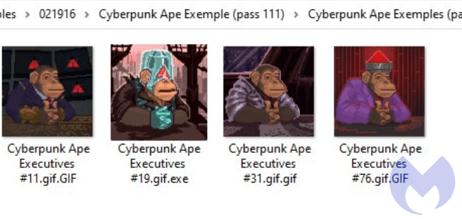 “Hi! We appreciate your artwork!” read the messages users received, per Malwarebytes. “Cyberpunk Ape Executives is inviting 2D-artists (online / freelance) to collaborate in creating NFT project. As a 2D-artist you will create amazing and adorable NFT characters. Your characters will become an important part of our NFT universe!”
