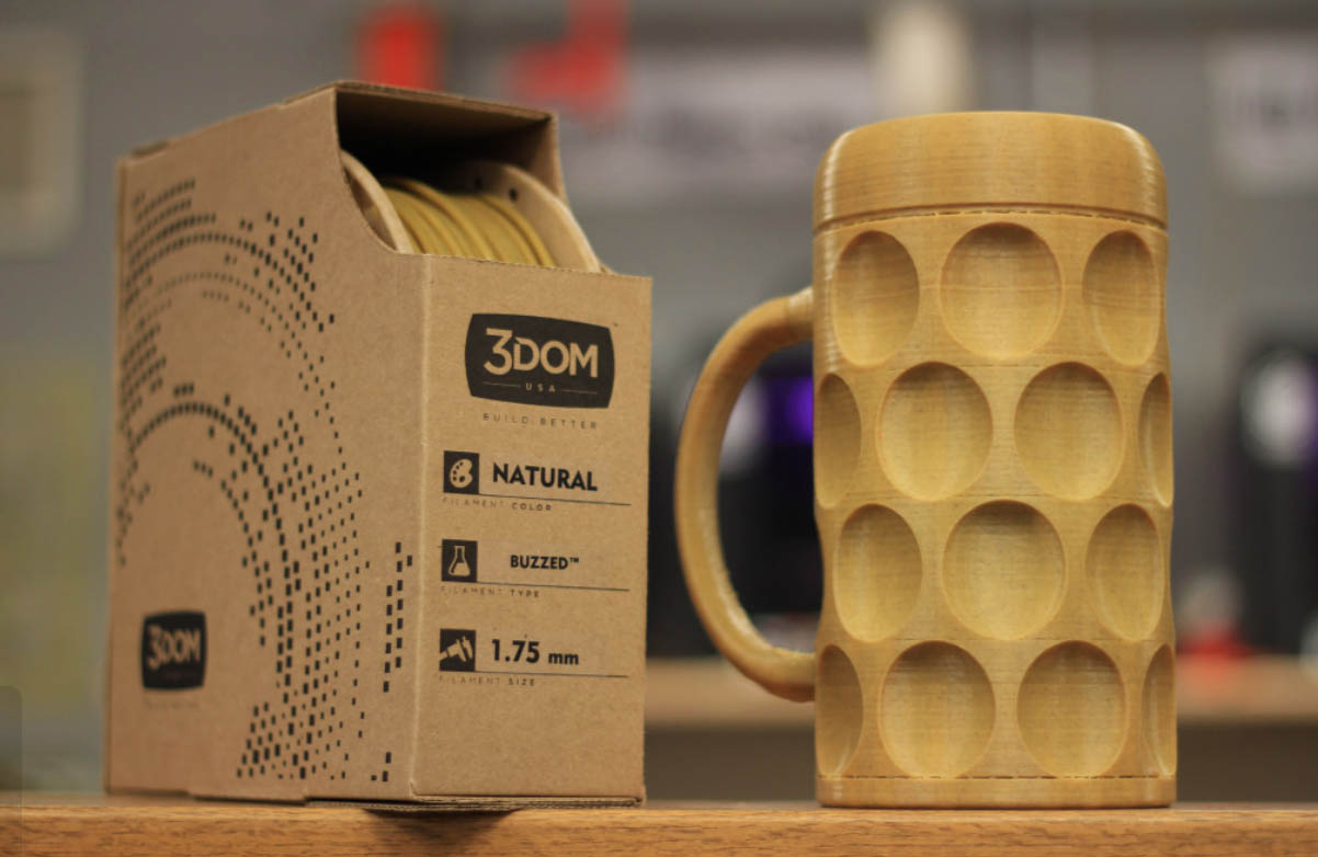 3Dom, a company that produces material for 3D printers, has partnered with c2renew to create a beer-based filament called Buzzed made from those recycled waste products. c2renew is a biocomposite company that takes supposedly unusable material and makes it usable.