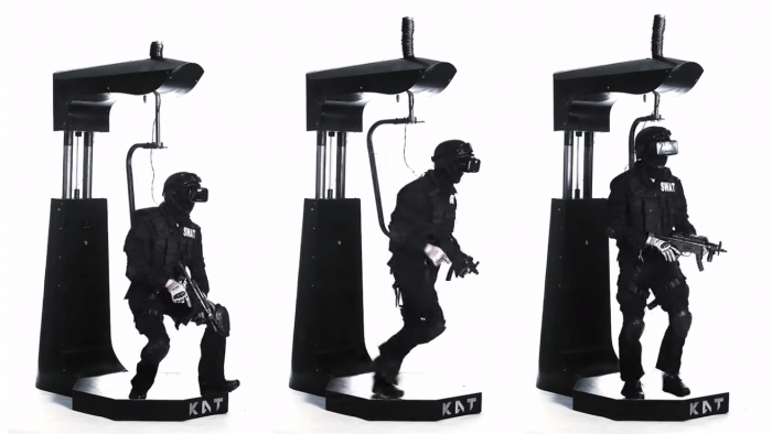 - The Kat Walk is somewhat different from other VR treadmills, with an overhead support structure that allows users to have full use of arms and legs without the fear of hitting columns or other supports. Currently, VR headsets can track your head motion, but can’t respond to your body unless you’re holding a controller. There’s also no tracker that needs to be worn around the waist.
