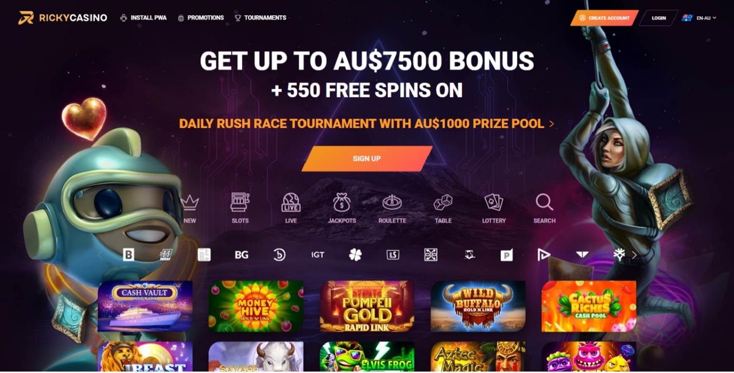 RickyCasino is an online casino Australia site that has a great variety of casino games to play and operates under a Curacao license. The welcome bonus for new players can get up to 7,500 AUD plus 550 free spins. From then on, existing customers can enjoy plenty of weekly promotions such as the Tuesday Bonus, Wednesday Free Spins Day and the Friday Bonus. Additionally, RickyCasino also has a VIP Bonus.