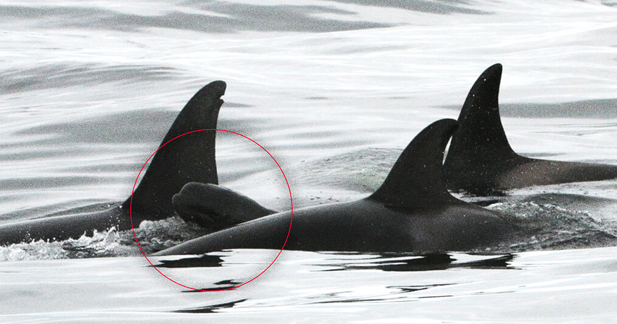 As SciAm notes, each sighting involved a pilot whale calf that could be no more than a few weeks old that swam alongside an adult orca female in what marine biologists call “echelon position,” with the baby beside and slightly behind the elder.