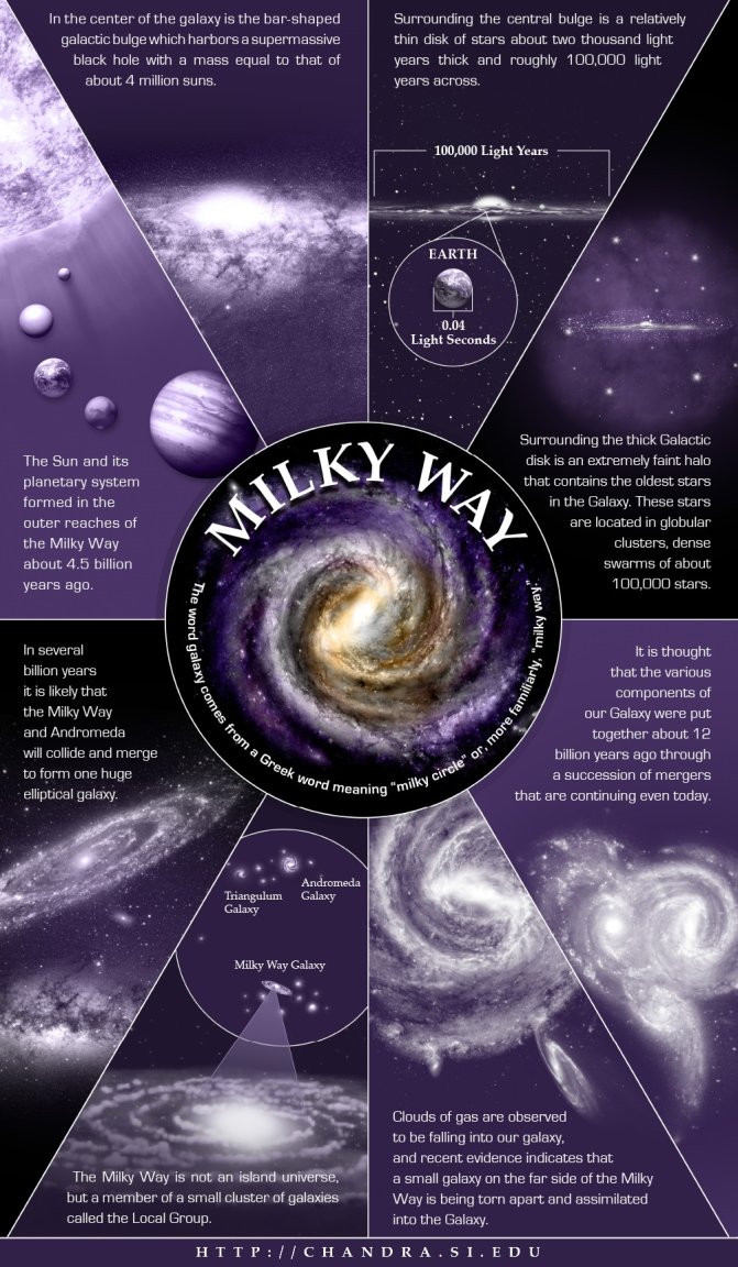 The Milky Way is the galaxy in which we currently reside. It is classed as a barred spiral galaxy, although this is actually fairly difficult to determine from within the galaxy. It’s sort of like trying to determine what a house looks like from the outside by looking out of a window when you are inside of it. Below are are of the most important facts that you need to know in order to understand our galaxy: