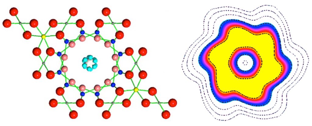 That’s when things got a little strange. As the water molecules burrowed through the hexagonal-shaped beryl channels, they took on an unusual organization. In contrast to the typical asymmetrical arrangement, the oxygen atom shifted to the center of mass—something usually centered on the hydrogen atoms.