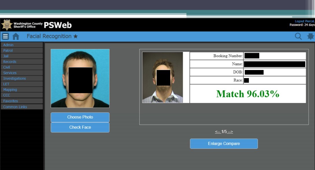 Some of the documents obtained by the ACLU show the user interface for the facial recognition software. Police will be able to upload any headshot and quickly receive likely matches along with biographic information including the person’s name, race, date of birth, and information on their criminal record.