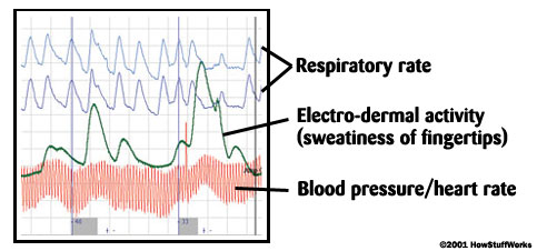 The polygraph clearly measures something, because it does all sorts of cool things when you ask people questions. The test only measures a person’s level of anxiety. As Saxe pointed out, “All these physiological measures are simply associated with fear and anxiety. And people are anxious, sometimes, when they’re telling the truth, and they can be not anxious, sometimes, when they’re lying. The more practiced you are at lying, the less anxiety is associated with it.”