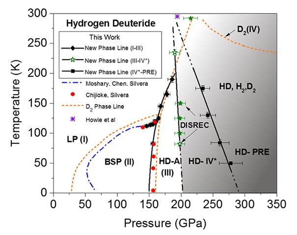 Results show that at 2 megabars, HD transitioned into HD-IV*, and with further increase of pressure, transformed into HD-PRE. At the HD-IV* transition state, the scientists observed a rapid dissociation of the molecule to recombine as the new isotopic solid, which they called DISREC.