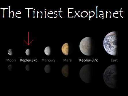 Kepler mission scientists analyzing the star recently found a staggeringly small planet, Kepler-37b, which is the smallest planet ever discovered. This tiny object has a diameter of a mere 2,400 miles (3,800 km). Remember, the Earth is 7,900 miles in diameter (12,800 km). Imagine trying to cram 7 billion humans onto a planet that is only about one-third the size of the Earth (it would be unpleasant, to say the least).