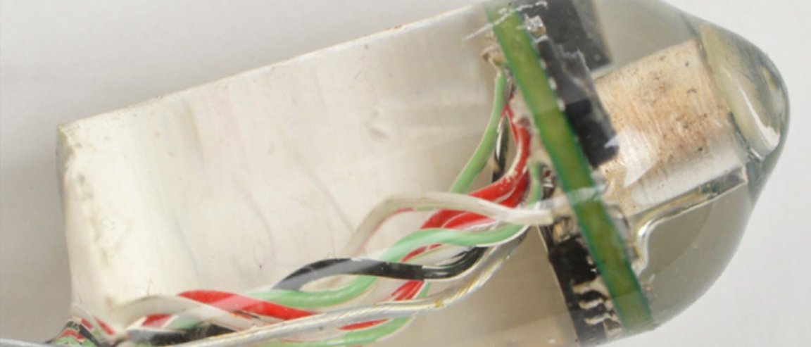 The sensor is nearly the size of a multivitamin, and has a small microphone in a silicone capsule, along with an electronics package that processes the sound and wirelessly sends radio signals to an external receiver, with a range of about 3 meters.