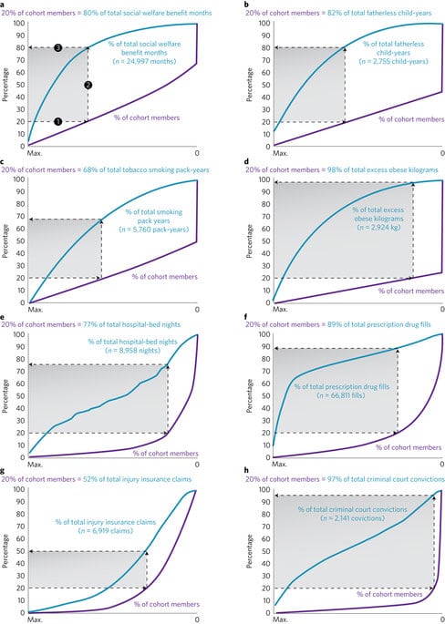 They also noted that the same 20 percent of subjects demanded the most from the state, accounting for “57% of nights in hospitals, 66% of welfare benefits, and 77% of fatherless child-rearing,” Quartz reports. “There aren’t so many children in middle class and wealthy homes who have poor brain health, but, where they are, they’ve also grown up to be very high cost users of public services,” says Terrie Moffitt, a professor of psychology and neuroscience from Duke University.