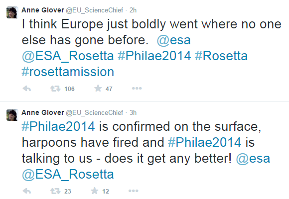 “We’re there and Philae is talking to us,” said Stephan Ulamec, the manager for the lander. “We are on the comet.”