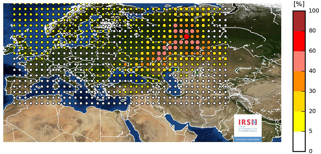 On November 9, the IRNS said that it had detected ruthenium-106 over France from September 27 to October 13 at levels of a few milliBecquerels per cubic meter of air. Their measurements pointed to a potential source of the radiation cloud as being somewhere between the Volga and the Urals, a Russian river and mountain range, respectively.