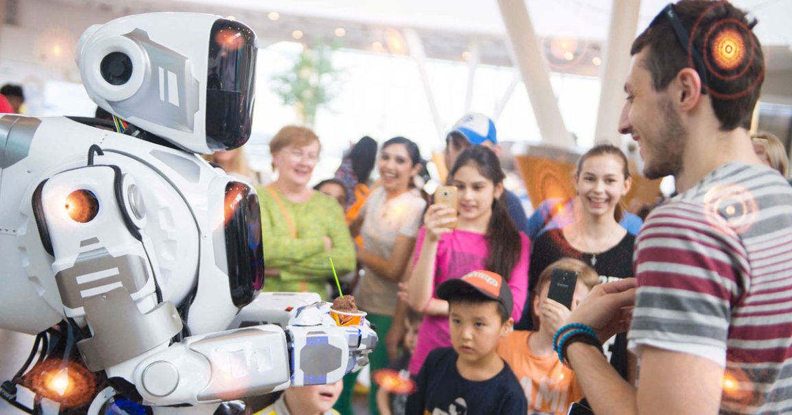 The future will probably be filled with impressive robots. But this wasn’t one of them. Even if all attendees and organizers knew the robot was a man in a suit all along, what was he doing at at an event that was meant to inspire the Russian youth?