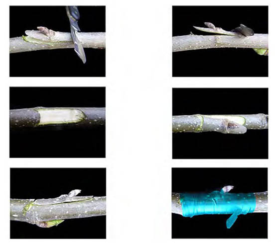 Chip grafting is the process by which the Tree of 40 Fruit was created. Van Aken begins by removing a sliver of a tree, including a bud, with a knife. He then takes the separated branch and joins it with a pre-existing one on another tree that bears different fruit.