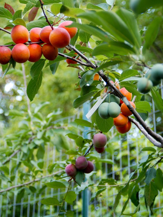 The fruits that grow on the tree are all stone fruits, meaning they have pits. The selection that Van Aken currently works with include plums, peaches, apricots, nectarines, cherries, and almonds.