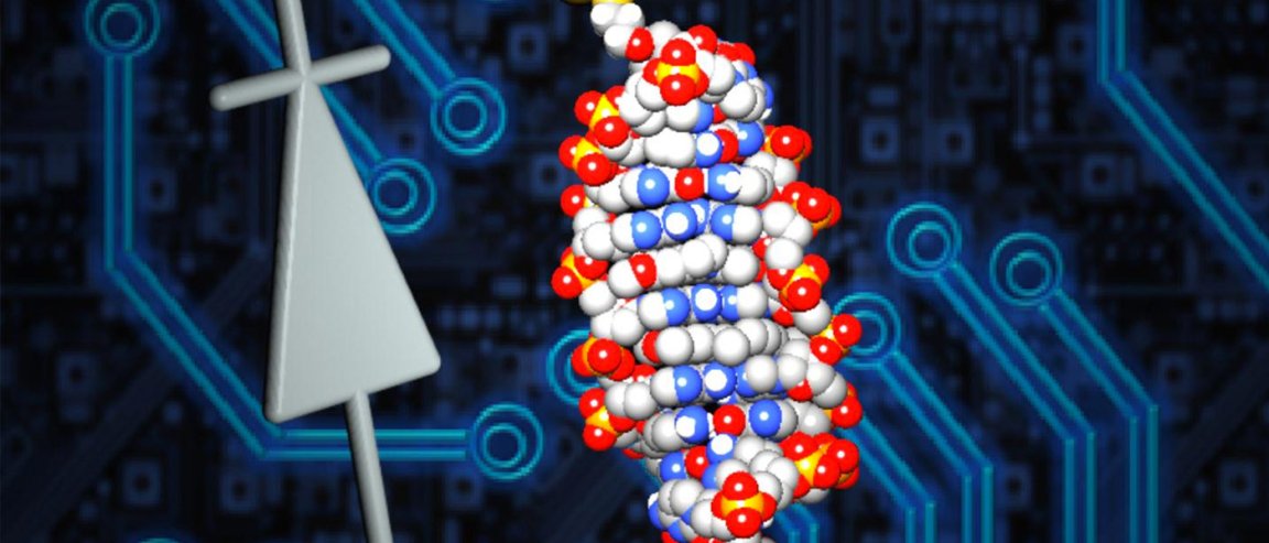 The researchers took a single DNA molecule, built of 11 base pairs, and grafted it to an electronic circuit only a few nanometers in size. When they measured the current through the molecule, it did not show any special behavior. But when layers of a molecule called “coralyne” were inserted between layers of DNA, the current increased some 15 times, which is crucial in such a small-scale diode.