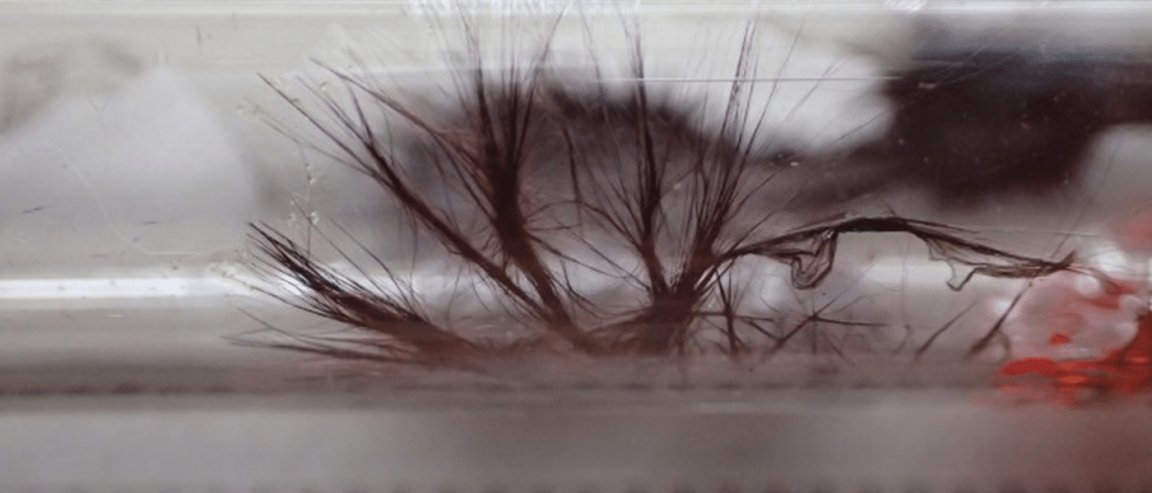 This gives it a robust structure. But unlike other inorganic compounds, the structure provides it flexibility. Centimeter-long fibers that can be arbitrarily bent without breaking, and can be made as thin as five double helix strands that are only a few nanometres thick.