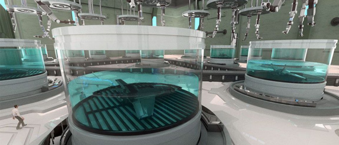 In the video, which you can watch below, you will see a drone being produced in a massive vat of chemicals before it is moved to a staging area where the drones engine and other components are added.
