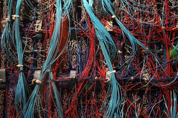 Both 1300-nanometer light and 1550-nanometer light, corresponding to C-band and O-band wavelengths widely used in fiber optic networks, were beamed at the device from above. The bar code-like structure redirected C-band light one way and O-band light the other, right on the chip.