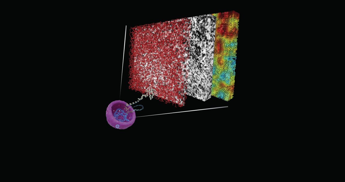 Although the basic double helix structure of the DNA molecule is known, its three-dimensional organization has continued to elude scientists. Every single cell somehow packs DNA that is two meters long into its nucleus, a tiny space only one-thousandth of a millimeter across. The question researchers have been trying to answer, then, is how does the structure manage such extreme compaction while maintaining function?