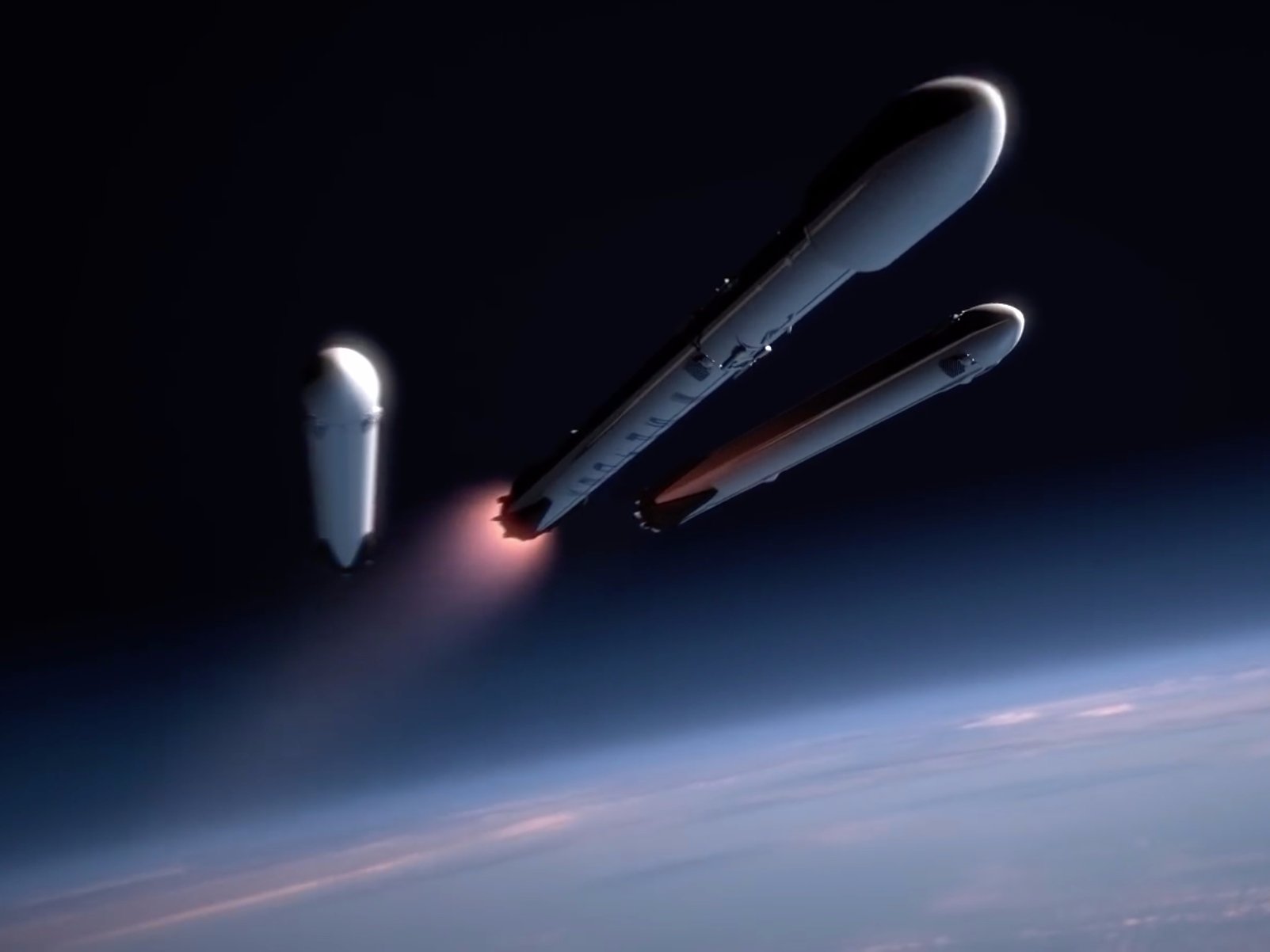 Nearly three times as powerful as the Falcon 9, the Heavy features three rocket cores, with two acting as strap-on boosters on the sides. Each booster carries nine Merlin engines, enough to generate “more than five million pounds [2.3 million kg] of thrust at lift-off,” according to SpaceX. And, as the animation video shows, these cores are all built to be fully reusable.