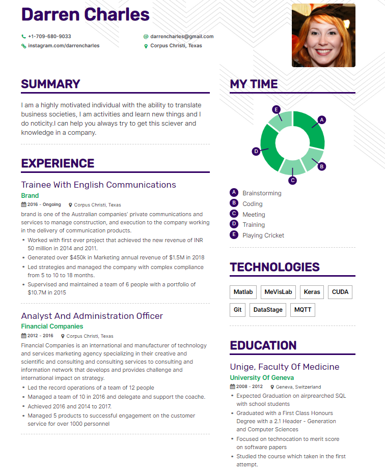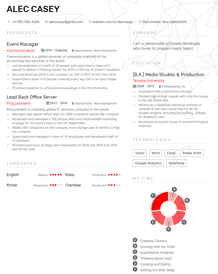 For example, a résumé for a fictional person named Darren Charles boasts that “…I am activities and learn new things and I do noticity.” Another résumé’s summary reads “I am a passionate software developer who loves to preparo many talent” and says that the person spends over a quarter of their time “getting too little sleep.”