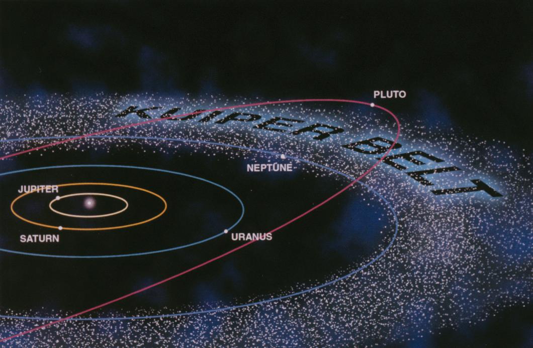 Pluto is the best known Kuiper Belt Object. It sits on the very edge of the belt that runs around the planets in our solar system. It’s just beyond Neptune, and thousands of objects exist here—including possible planets, small moons, and comets—all of which remain from the formation of the solar system more than 4.6 billion years ago.