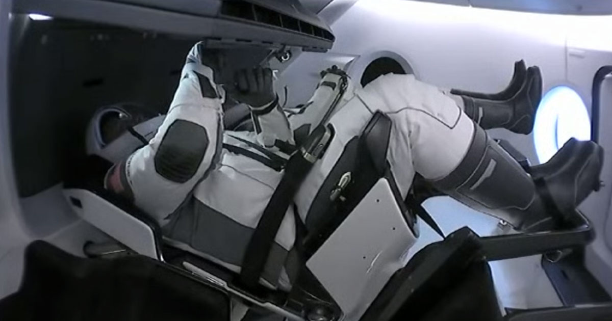 NASA astronauts Bob Behnken and Doug Hurley fist bumped as they reached orbit on board a Crew Dragon spacecraft atop a SpaceX Falcon 9 rocket from the historic Launch Complex 39A at the Kennedy Space Center in Cape Canaveral, Florida. Nine minutes later, the spacecraft entered orbit.