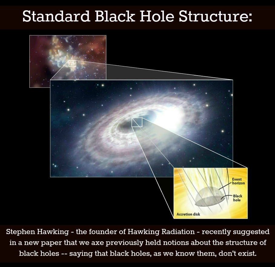 The idea itself is undoubtedly radical, but surprisingly sane, given the fact that it solves a paradox associated with black holes; called the firewall paradox. Hawking previously showed that black holes would leak particles and radiation and eventually explode; however, even for a black hole that is only the mass of a star, it would take longer than the age of the universe. The problem with this is that the information leaked from the black hole would be lost. And modern physics dictates that information cannot be lost from the universe (it deals with issues of quantum entanglement, which you can read about here).