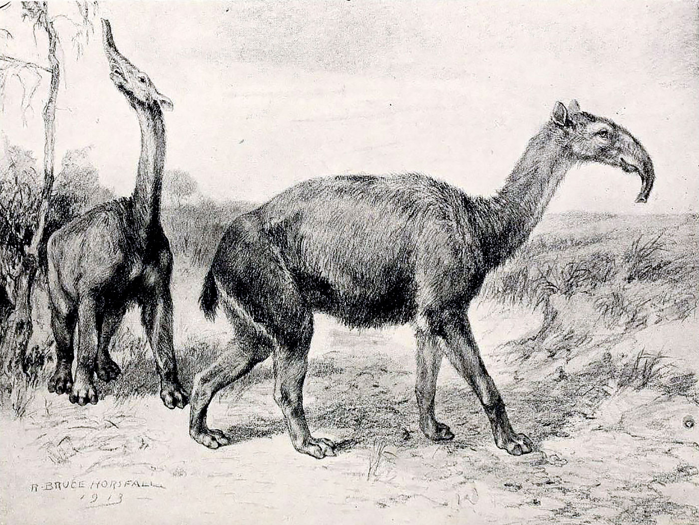 Charles Darwin discovered the bones of Macrauchenia, which went extinct toward the end of the Ice Age, in 1838 while digging in Patagonia. To him they seemed to belong to a kind of prehistoric llama. The remains were analyzed later on by the top anatomist in the UK, Richard Owen, who named the mystery mammal Macrauchenia patachonica. Although Darwin was right that there were some similarities with the llama, Macrauchenia didn’t appear to be a good fit with any existing group of mammals.