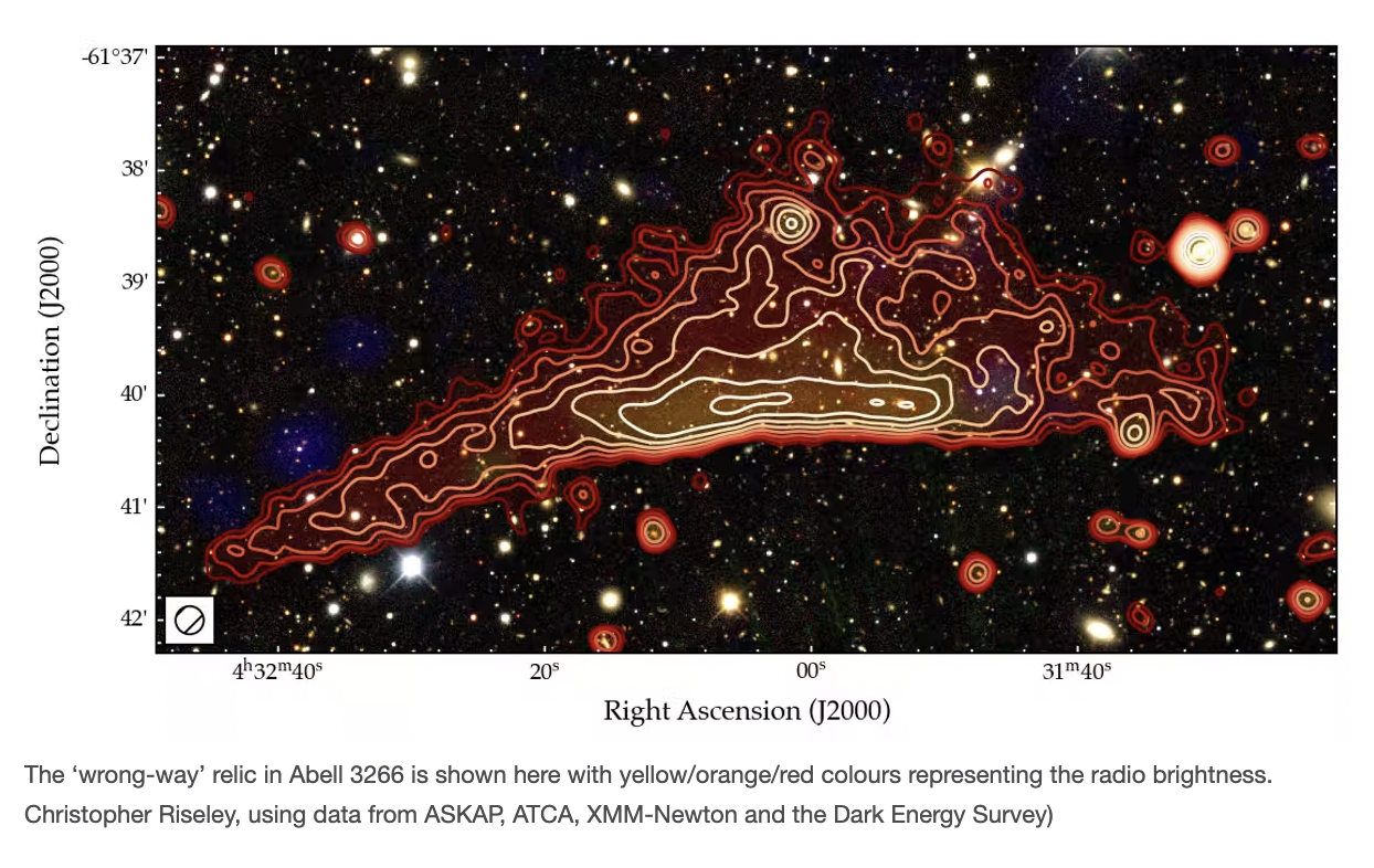 This relic is unlike any radio object scientists have ever seen before, according to the team, due to its highly unusual concave shape, earning it its “wrong-way relic” nickname.