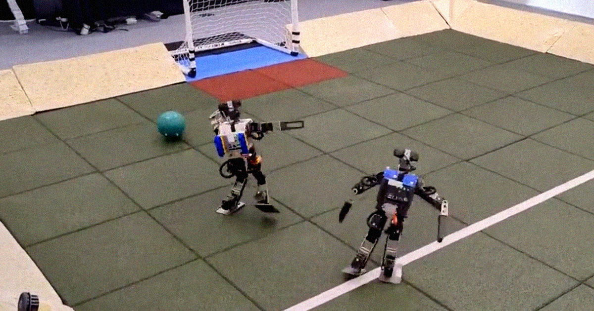 And clearly, their work is paying off. Not only are the artificial ankle biters agile, they also exhibit a strategic understanding of the game, the researchers said. They can mark the other player with the ball, defend their own goal, block shots, and most importantly, aim for the back of the opponent’s net.