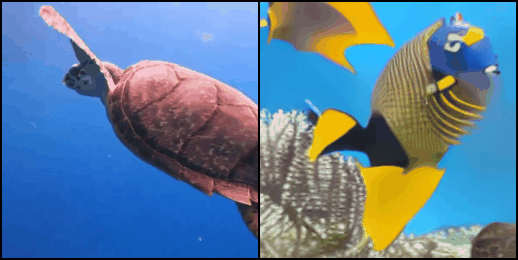 But the effect is far from perfect. For instance, a video of a jellyfish was inexplicably transformed into a clip of a fish swimming, while a video of a sea turtle was reinterpreted as footage of a fish.