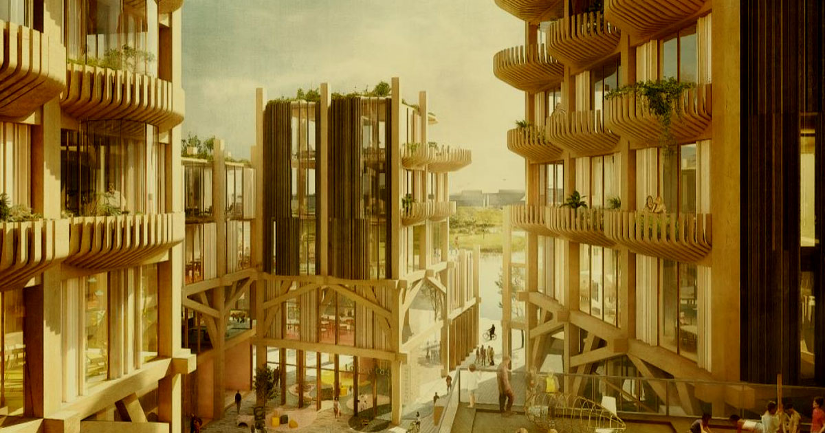 The $1.3 billion includes investment in a tall timber factory, which would make timber construction materials for the first houses. It also includes “optional credit financing” to speed up the building of a light rail connection to the waterfront.