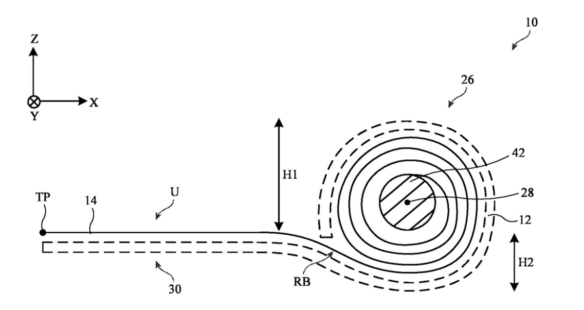 Apple imagines that an iPhone screen — or what-have-you — may “be moved between an unrolled state in which the display is planar and a rolled state in which a rollable portion of the display is rolled up for storage,” the patent says. In other words, the screen could seemingly be flat while a portion of it is rolled up.